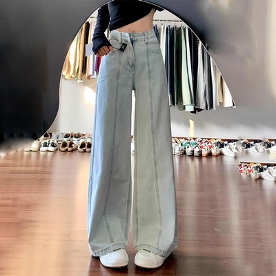 美式复古浅蓝色阔腿牛仔裤女2025新款高腰显瘦宽松垂感拖地直筒裤42.6元淘宝49.6元