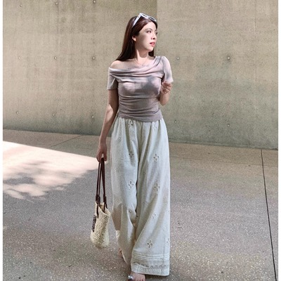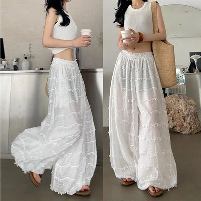 白色奶昔!ins春夏褶皱奶芙感爆棚宽松百搭垂感阔腿肌理山本裤H19.99元淘宝69.99元