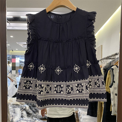 韩国东大门25夏装新款精致刺绣图案木耳边袖口韩版显瘦A字版衬衫129元淘宝139元