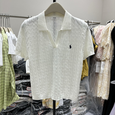 2025夏季新款时尚百搭翻领小马刺绣针织休闲短袖上衣女298197元淘宝105元