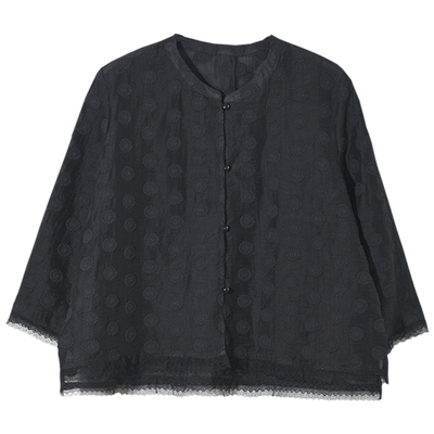 夏季薄款宽松显瘦V领短袖衬衫女纯棉五分袖上衣复古刺绣休闲衬衣79元淘宝87元
