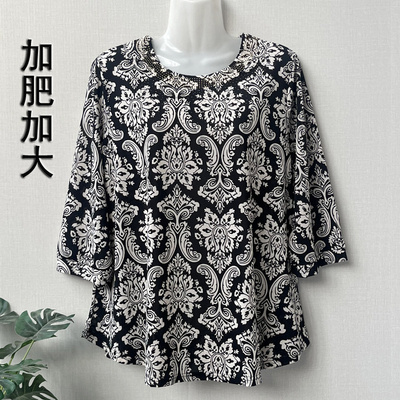 妈妈加肥加大宽松遮肚中袖上衣30.6元淘宝32.6元