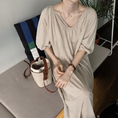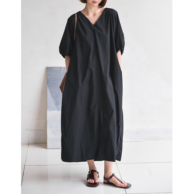 韩国极简宽松V领大码连衣裙59.9元淘宝64.9元