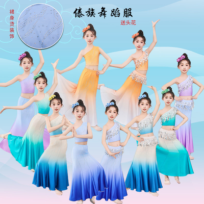 傣族服装儿童女演出服表演女童孔雀舞包臀鱼尾裙少儿裙民族表演服49元天猫52元