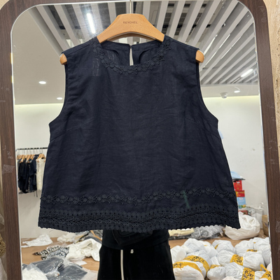 韩版无袖亚麻小衫女2025夏新款时尚重工刺绣圆领马甲衬衫上衣9567138.5元淘宝158.5元