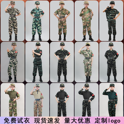 儿童迷彩服套装男女童蛙服小学生夏令营户外军训长短袖幼儿园夏季18元天猫21元
