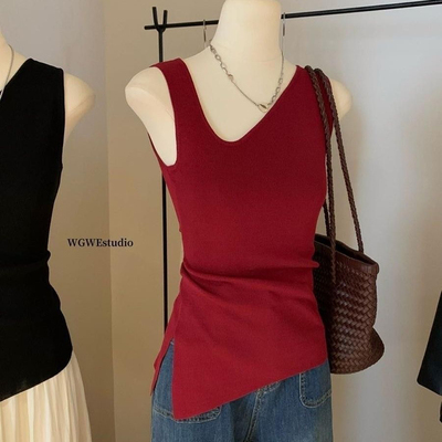 不规则斜领开叉吊带背心女夏春内搭设计感修身显瘦上衣22.9元淘宝24.9元