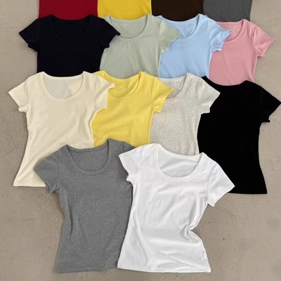 莫代尔中袖t恤女夏季低领紧身U领打底衫内搭高级感上衣2025年新款17.9元淘宝19.9元