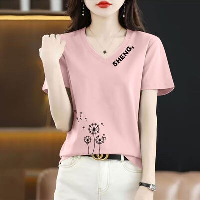 时尚洋气ins印花新款上衣休闲通勤女打底衫薄款可爱圆领短袖T恤5.1元淘宝8.1元