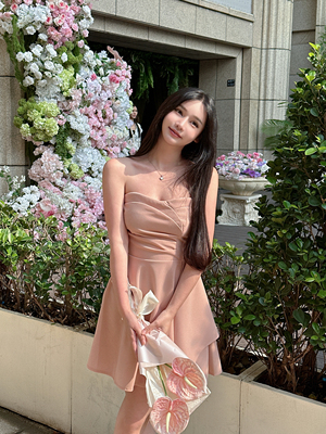 【云很慢】2025新款夏季不规则下摆收腰性感短裙抹胸连衣裙女345元淘宝405元
