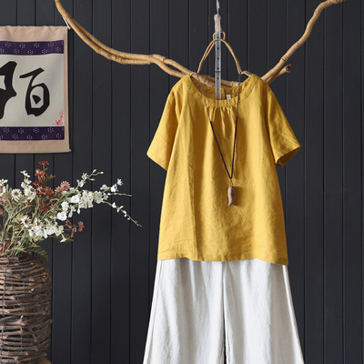 百搭圆领短袖100%亚麻T恤上衣女89.9元淘宝109.9元