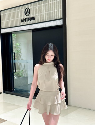 女神滤镜高级感缎面上衣荷叶边半裙两件套装2025夏季新款350元淘宝419元