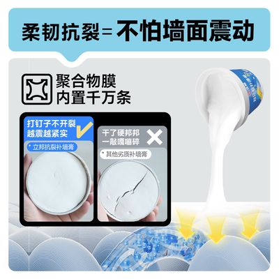 立邦抗裂补墙膏防水防潮防霉墙面修补膏白色墙壁反碱修复腻子膏56.9元天猫66.9元