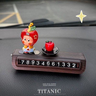 苹果星星人改娃木纹停车号码牌车内装饰车载挪车电话可爱提车礼物25.9元淘宝35.9元