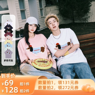 【所有爸妈的幸福家直播间】lemanism腊肠狗毛巾绣短袖T恤情侣款69元天猫200元