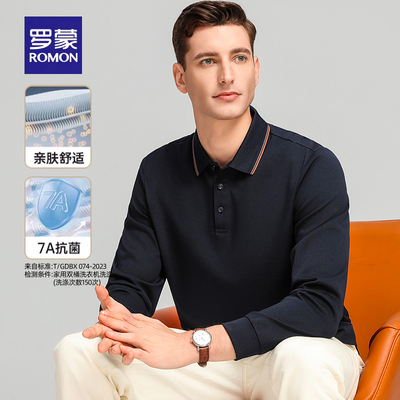 罗蒙男士7A抗菌商务长袖POLO衫男118元天猫200元