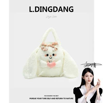 【刘叮当甄选】可爱桃子兔毛绒公仔包包小兔子玩偶手提双肩包包9.99元淘宝39.99元