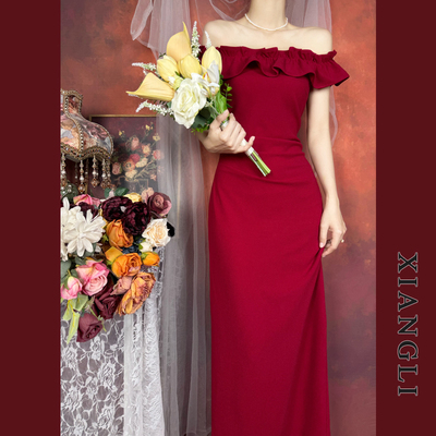 巷里法式复古红色订婚敬酒礼服裙184元淘宝189元