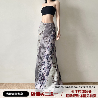 IAEY美式vintage森系植物印花低腰半身裙百搭修身包臀古着感长裙38元淘宝39元