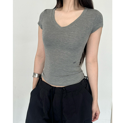 鱼叁 美式短款v领短袖t恤软糯夏季清凉百搭收腰显身材正肩v领上衣44元淘宝45元