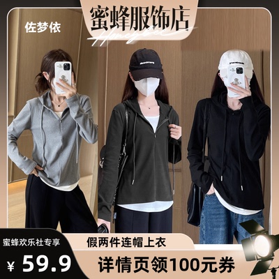 【蜜蜂欢乐社】佐梦依双面绒连帽拉链假两件T恤59.9元淘宝159.9元