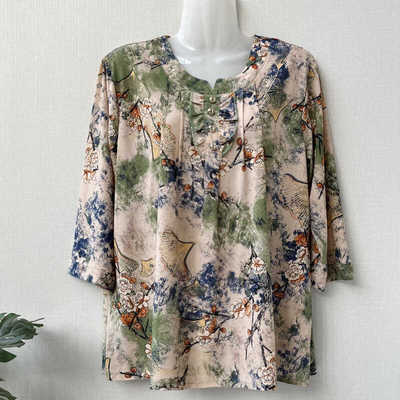 妈妈装春装翻领花色烫钻长袖T恤30.8元淘宝32.8元