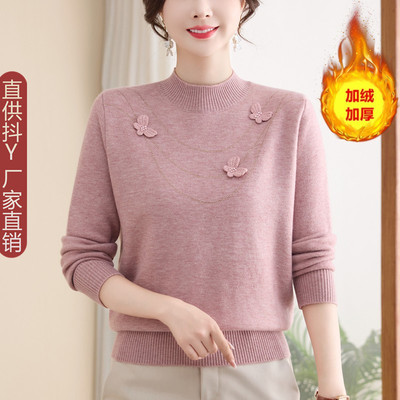 中年妈妈冬装加绒加厚针织毛衣中老年人女装宽松立体时尚保暖上衣49.9元淘宝59.9元