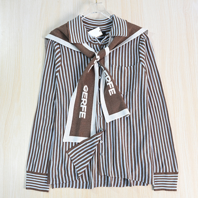 毛织撞色条纹配披肩长袖针织衬衫150元淘宝155元
