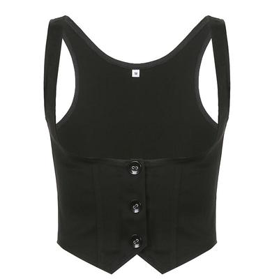 WEEKEEP 街头美式复古黑色排扣背心马甲女百搭外穿收腰显瘦上衣35元淘宝36元