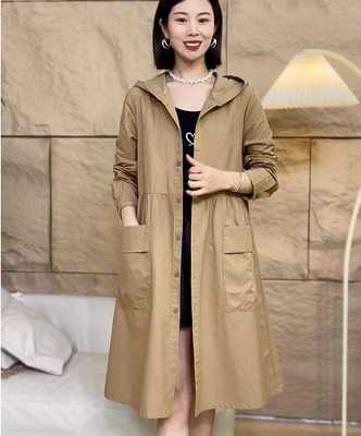 薄款中长款风衣妈妈装2025春季新款连帽宽松纯色洋气大口袋外套88.9元淘宝89.9元