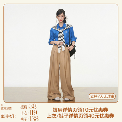 【小敏推荐】 WESTAYONE 蓝色衬衫+直筒休闲裤+条纹披肩38元淘宝48元
