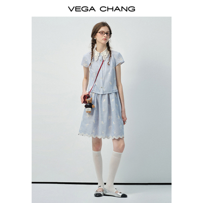 VEGACHANG翻领条纹刺绣连衣裙549元淘宝609元