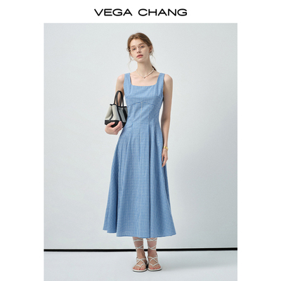 VEGACHANG法式方领格子连衣裙379元淘宝409元