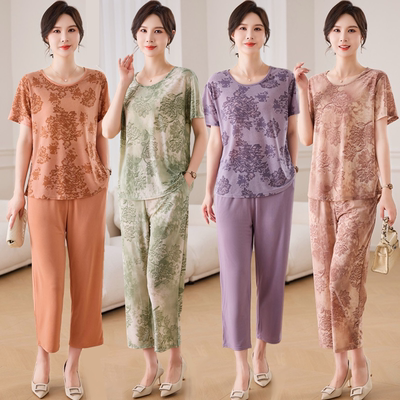 新款冰丝套装中老年女装短袖T恤39.9元淘宝49.9元