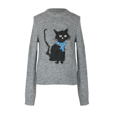【Coco喜欢】冬季猫咪提花圆领套头绵羊毛毛衣女宽松显瘦针织上衣256元淘宝329元