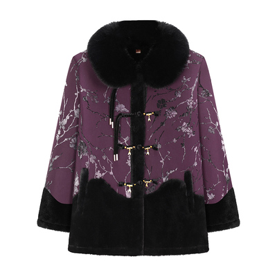 奶奶冬装外套中老年皮毛一体大衣女妈妈保暖上衣老人加绒加厚棉袄148元淘宝158元
