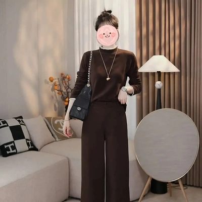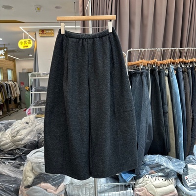 2025秋冬新女裤妈妈直筒毛呢休闲长裤高腰松紧加绒加厚中老年阔腿18.9元淘宝19.9元