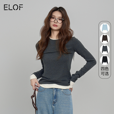 【所有女生的衣橱直播间】ELOF撞色T恤女撞色显瘦加绒打底衫79元天猫159元