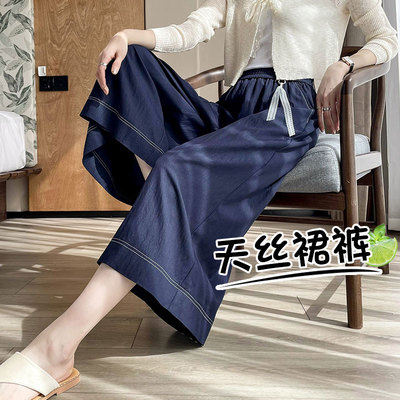 2025新款天丝牛仔裙裤女夏季小个子七分八分大裤脚冰丝阔腿裤裙子39.9元淘宝99.9元