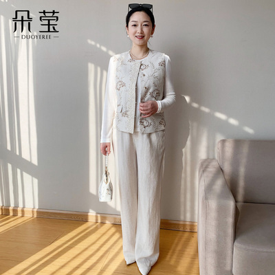 中年妈妈春夏装国风马甲三件套装258元天猫358元