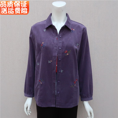 老年人九分袖灯芯绒纯棉长袖衬衫128元淘宝138元