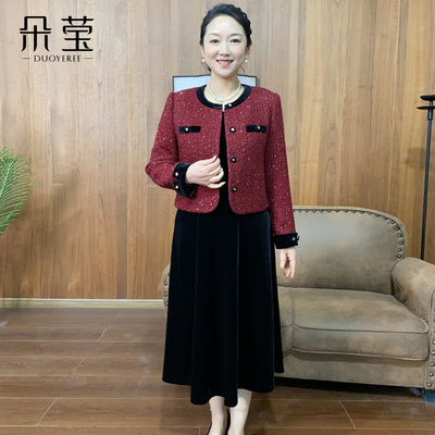 妈妈春秋装高贵洋气连衣裙套装268元天猫368元
