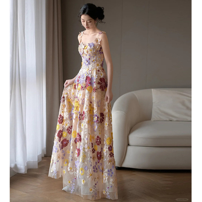欢喜橙【繁花】轻婚纱新娘轻奢小众礼服裙法式花朵连衣裙日常可穿298元淘宝378元