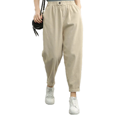 新款复古全棉休闲裤女纯色百搭松紧腰哈伦裤纯棉九分裤子秋天23.8元天猫25.8元