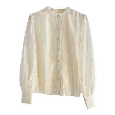 宽松气质单排扣长袖蕾丝立领衬衫66元天猫69元