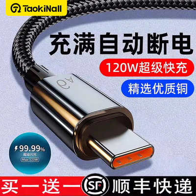 120w充电器线编织数据线三合一tpyec超级快充车载一拖三华为通用9.99元淘宝19.99元