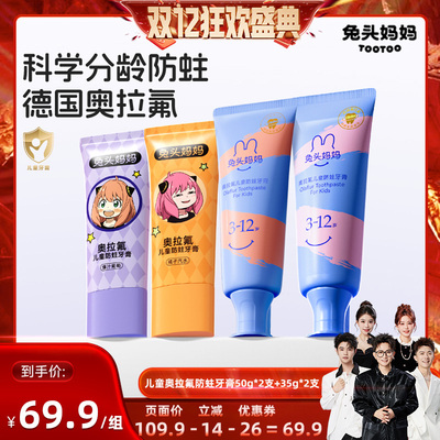兔头妈妈儿童牙膏奥拉氟防蛀牙膏83.9元天猫109.9元