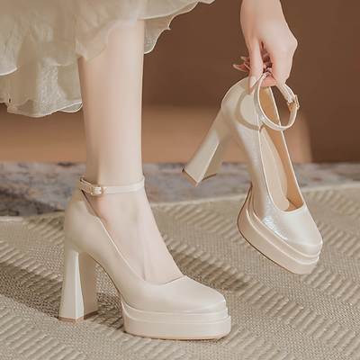 头防水台高跟鞋女粗跟玛丽珍缎面64元淘宝66元
