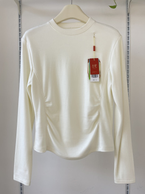 古妃设计感褶皱正肩打底衫百搭圆领保暖长袖女秋冬内搭修身短上衣50.7元淘宝52.7元