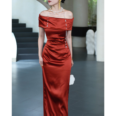结婚敬酒服一字肩红色连衣裙174元淘宝179元